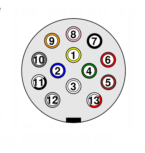 Ar 13 tapām ligzda piedāvā pilnu funkcionalitāti visām standarta piekabes apgaismojuma prasībām, tostarp bremžu lukturiem, pagrieziena rādītājiem, gabarītgaismas lukturiem un papildu funkcijām, piemēram, piekabes iekšējā apgaismojuma barošanai vai savienojumam ar ABS sistēmu.
